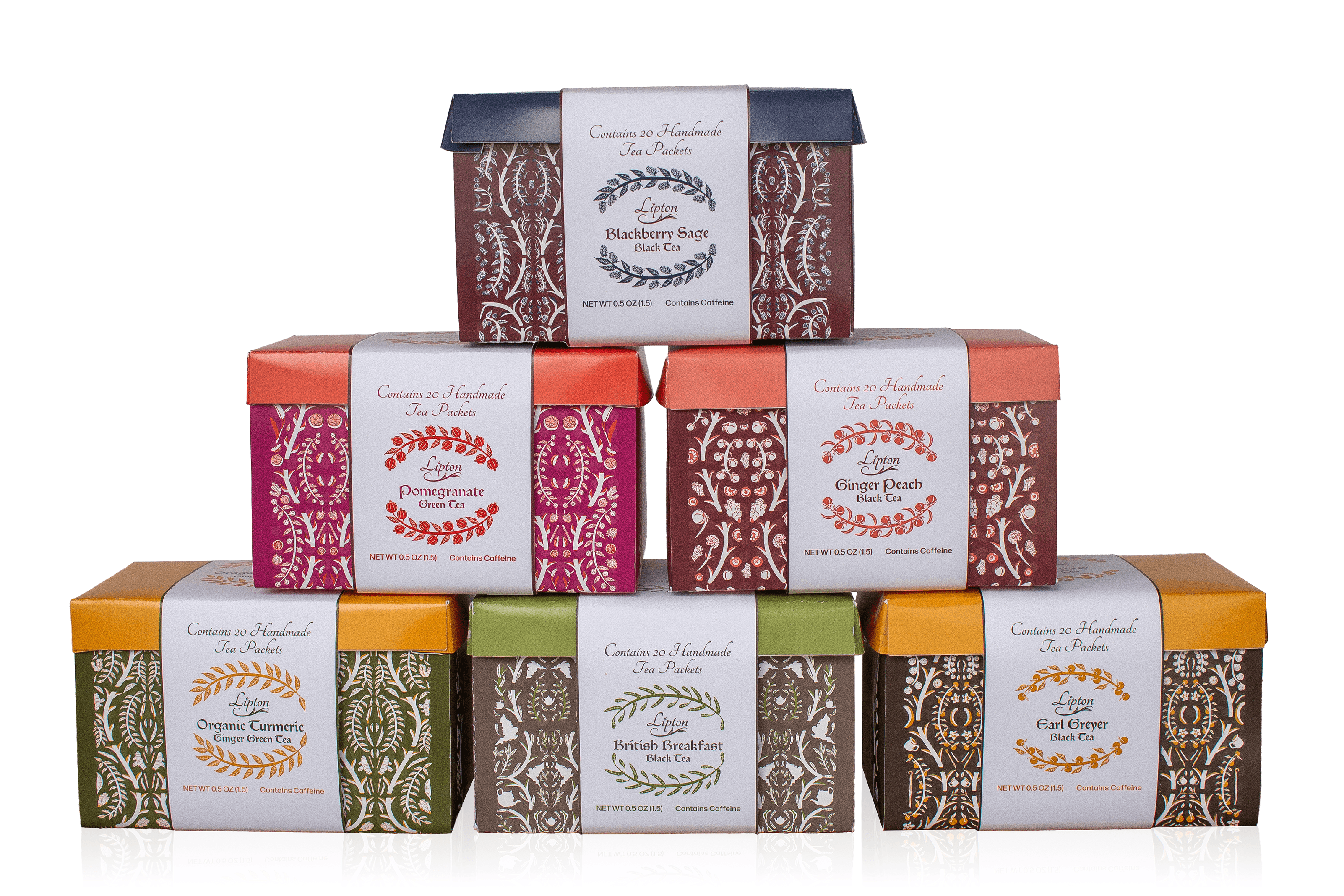 A premium packaging redesign for Lipton Tea’s new boutique line featuring six flavors through intricate botanical patterns, rich jewel toned color, and refined typography. I refreshed the Lipton logo and designed individual tea bag pouches and retail boxes creating a cohesive package for the iconic brand.
